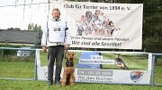 Heiner Feldscher startete auch bei dieser Prüfung mit seinem Airedale Rüde Cnud aus dem Siegtal in der Stufe IGP 3 und erreichte