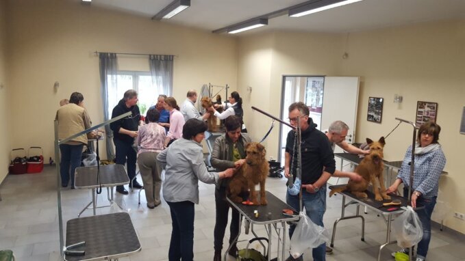 Dieser Kurs richtet sich wie immer an Terrierfreunde die bereits Trimmversuche unternommen haben und noch der Mithilfe erfahrener Trimmer bedürfen. (Hier stehen OG Mitglieder und befreundete Aussteller als „Trimmpaten“ zur Verfügung) Es werden Grundlagen des Trimmens vermittelt auf die man aufbauen kann. Am Ende der Veranstaltung sollte jeder Teilnehmer mit einem fertigen Hund nach Hause fahren.